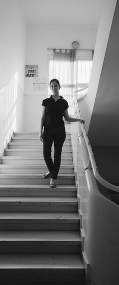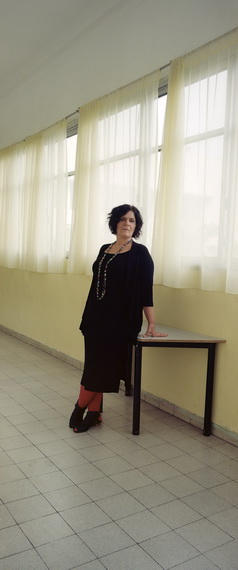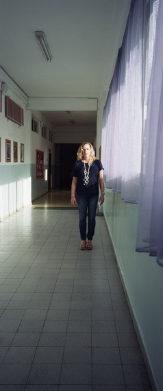 "מירי שטיינברג אבן, נאוה נגל ושיר מוסק שלו מחנכות את הכיתות שבהן למדו/לומדים יאן ואדם, בניי התאומים. לשלושתן תפקיד משמעותי בחיי ילדיי, ועבורם הן מהוות סמכות נוספת וחשובה לבד מאתנו, הוריהם. בחרתי לצלם אותן, נשים מורות הרואות בהוראה מקצוע רציני וייעוד בחייהן. נשים חזקות, כל אחת בדרכה, המעודדות סקרנות, חקרנות, אחווה לזולת וביקורתיות. התמונות צולמו בחללי בית הספר, הממוקם בבניין באוהאוס היסטורי, משופע מסדרונות ארוכים וגרמי מדרגות מסוגננים. הם צולמו במצלמה פנורמית, בפורמט אורכי, באור טבעי. לאחרונה נצבעו המסדרונות בצבעי פסטל רכים, והחלונות הרבים כוסו בווילונות רכים תואמים, המרככים מעט את נוקשות המבנה, אך לא בהכרח משתלבים עמו". |