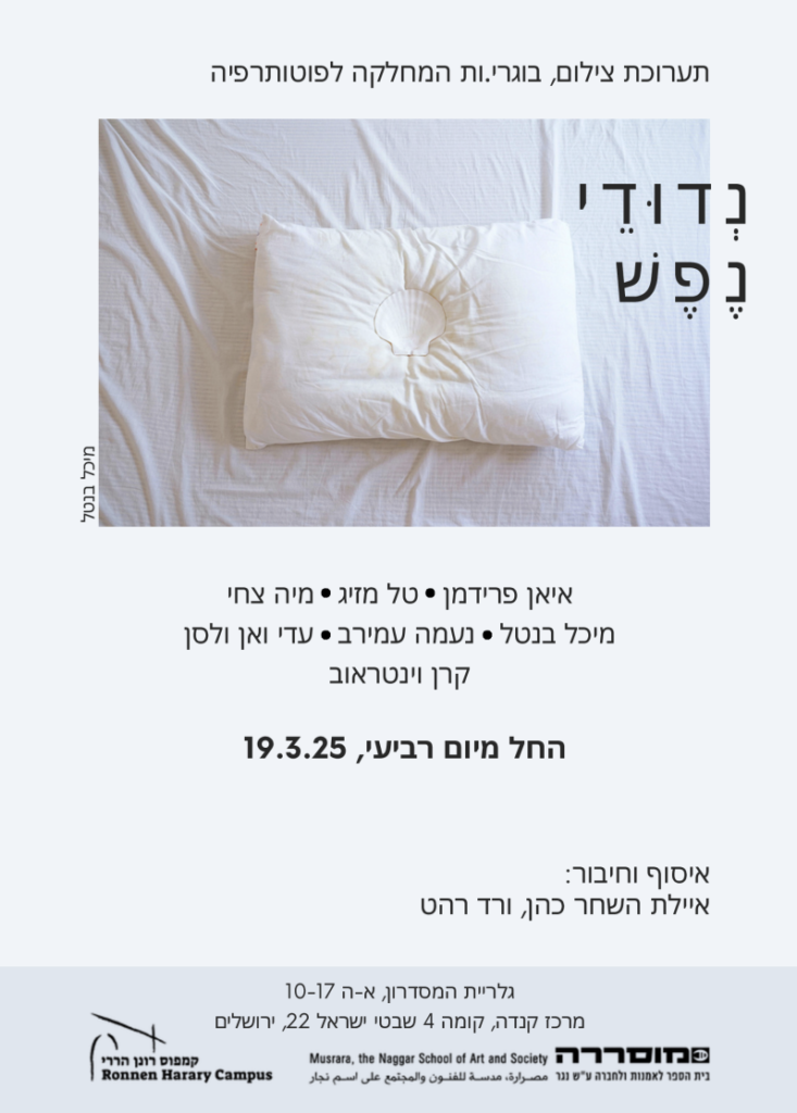 ביום רביעי 19.3, נפתחה תערוכת הצילום "נדודי נפש", המציגה עבודות מאת בוגרי ובוגרות המחלקה לפוטותרפיה, בגלריית המסדרון שבבית הספר.