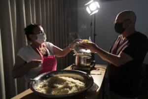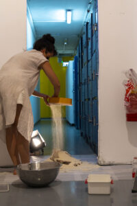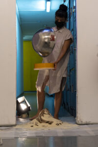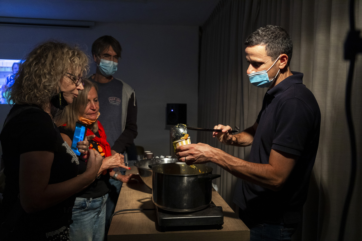 בפתיחת התערוכה הופיעה האמנית והשפית בר ירושלמי בשיתוף עם בשלניות מהשכונה (צילום: היפא זלאטימו)