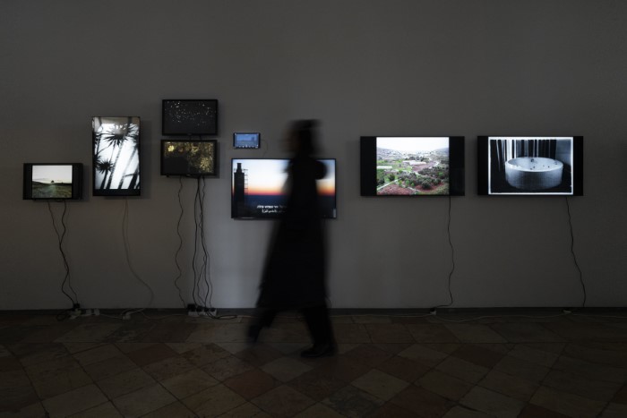 המראות נצפים על גבי מסכים, התלויים בחלל הגלריה החדשה של מוסררה במתווה אופקי ומדמים קו נוף. כל מסך מסמן טריטוריה של יוצר.ת בודד.ת, שיש לה מרכז וקצוות, אולם גבולות הטריטוריות השונות מתערערים ומייצרים סינרגיה לנוכח הסמיכויות והחיבורים, שיוצר קצה הנוף המשותף; בבחינת מתווה נוסף, הנע בין פנים העבודות האוטונומיות לבין החוץ שלהן, אל עבר שכנותיהם.